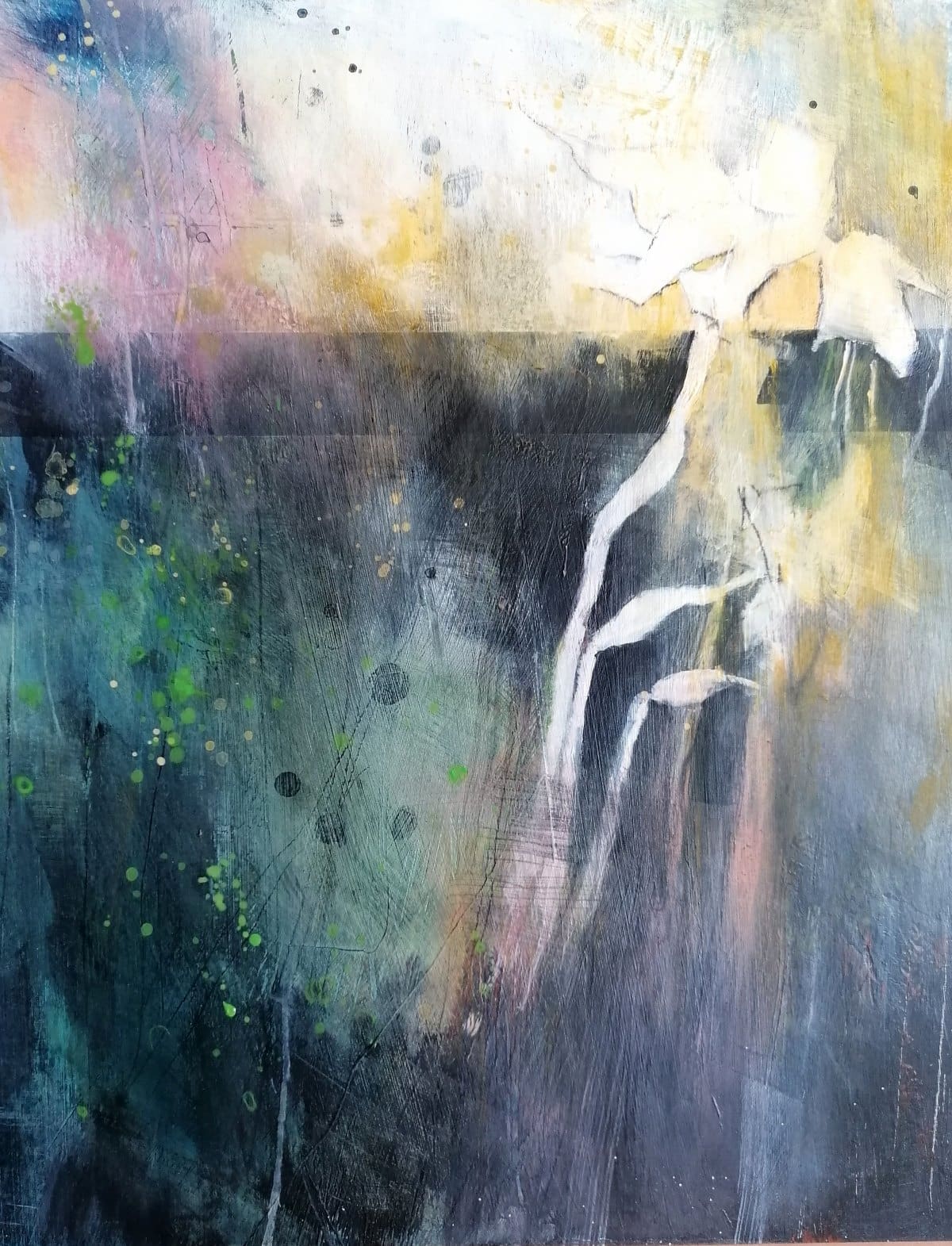 Paintings inspired by nature and wild spaces. Abstract and semi-abstract depicting shape, colour and light, looking for the essence of place, sometimes including collage.