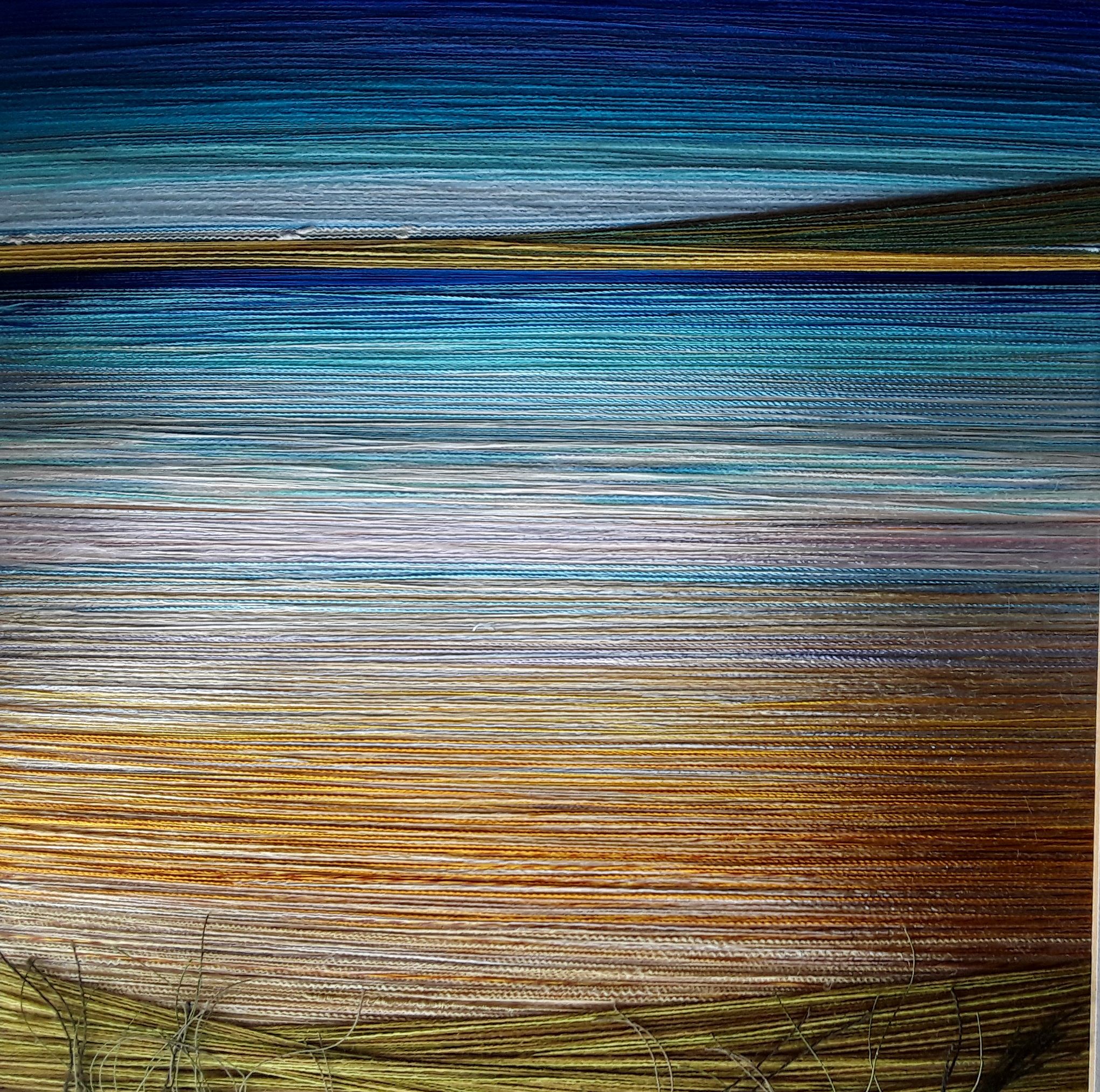 Textile art, yarn wrapping mostly reflecting Welsh landscapes
