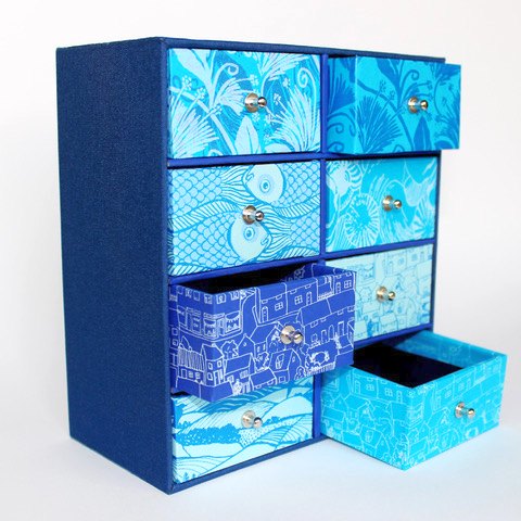 Hand stitched and bound notebooks, sketchbooks and journals. Boxes for jewelery, trinkets and special gifts as well as cards and prints