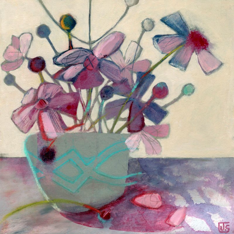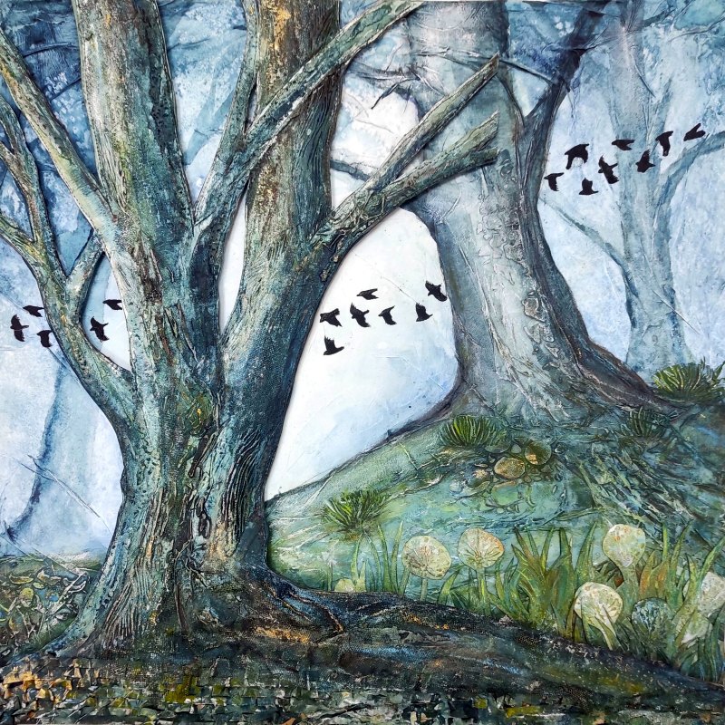 Mixed media artist and printmaker who works with acrylics, watercolours, specialist inks and hand-printed paper